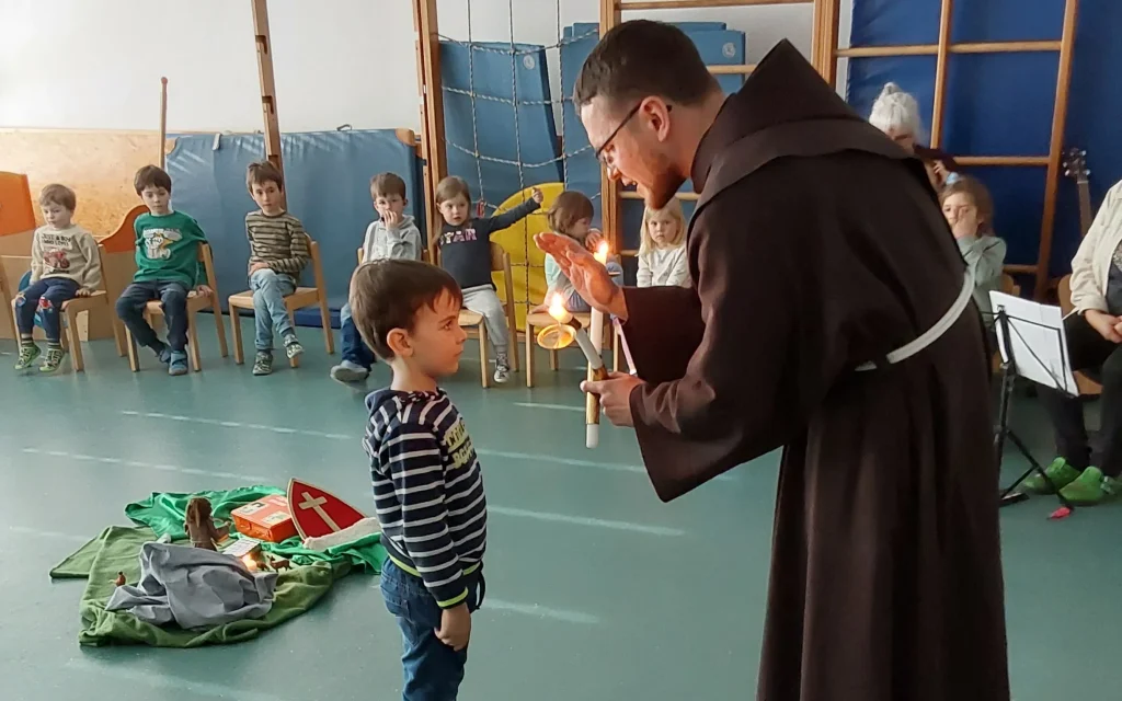 Am Mittwoch, 04.02.2026 besuchte Pater Noah die Kita und spendete allen Kindern den Blasius Segen zum Schutz vor Halskrankheiten.
