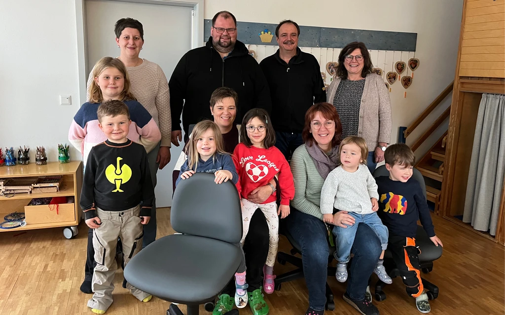 Überrascht wurden die Mitarbeiter der Kita am Montag, 24.11.25 von Brigitte und Roland Ströbel – Firma Elektro Ströbel GmbH, die in diesem Jahr auf Kundengeschenke zu Weihnachten verzichtet hat und stattdessen der Kita 10 ergonomische Erzieherstühle und einen Bürostuhl überreichten. Vielen herzlichen Dank – liebe Familie Ströbel!