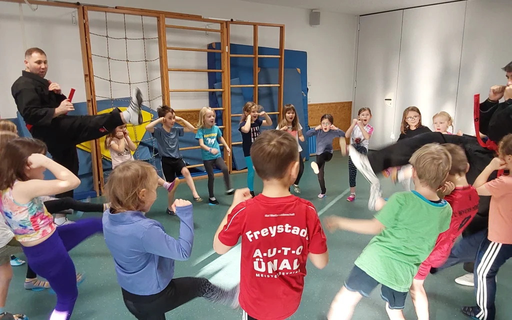 Am Mittwoch, 21.01.2026 waren zwei Trainer der Kampfkunstschule Geiger zu Besuch und luden alle Kinder zu einer Reise ins Weltall ein. Spaß, Spiel und Körperkoordination standen auf dem Programm, mit dem Ziel, die Persönlichkeit eines jeden einzelnen Kindes zu stärken und Möglichkeiten aufzuzeigen entsprechend Grenzen zu setzen und „Nein“ zu sagen.