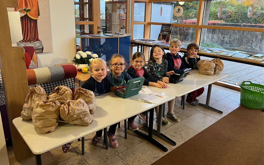 Nach Abschluss der Kartoffelernte eröffneten die schlauen Füchse im Eingangsbereich der Kita einen Kartoffelladen.