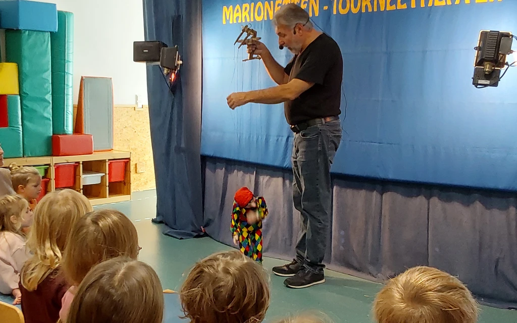 Marionettentheater / Kindergarten / 29. Oktober 2025 Am Mittwoch, 29.10.2025 war es dann soweit: Das Marionettentheater: „Die rollende Kulisse Fürth“, gastierte in unserer Kita und verzauberte alle Kinder mit dem Stück: Das tapfere Schneiderlein.